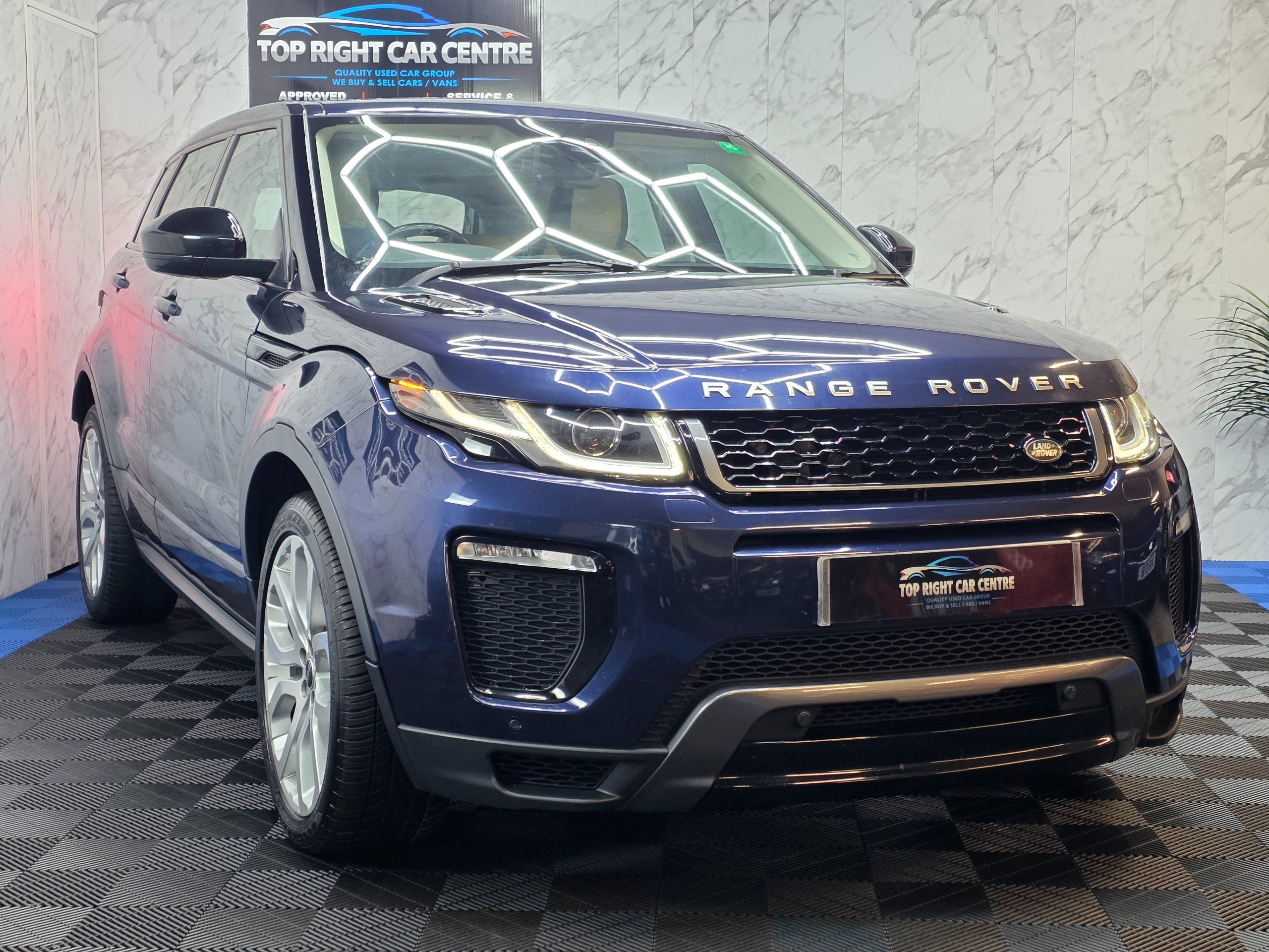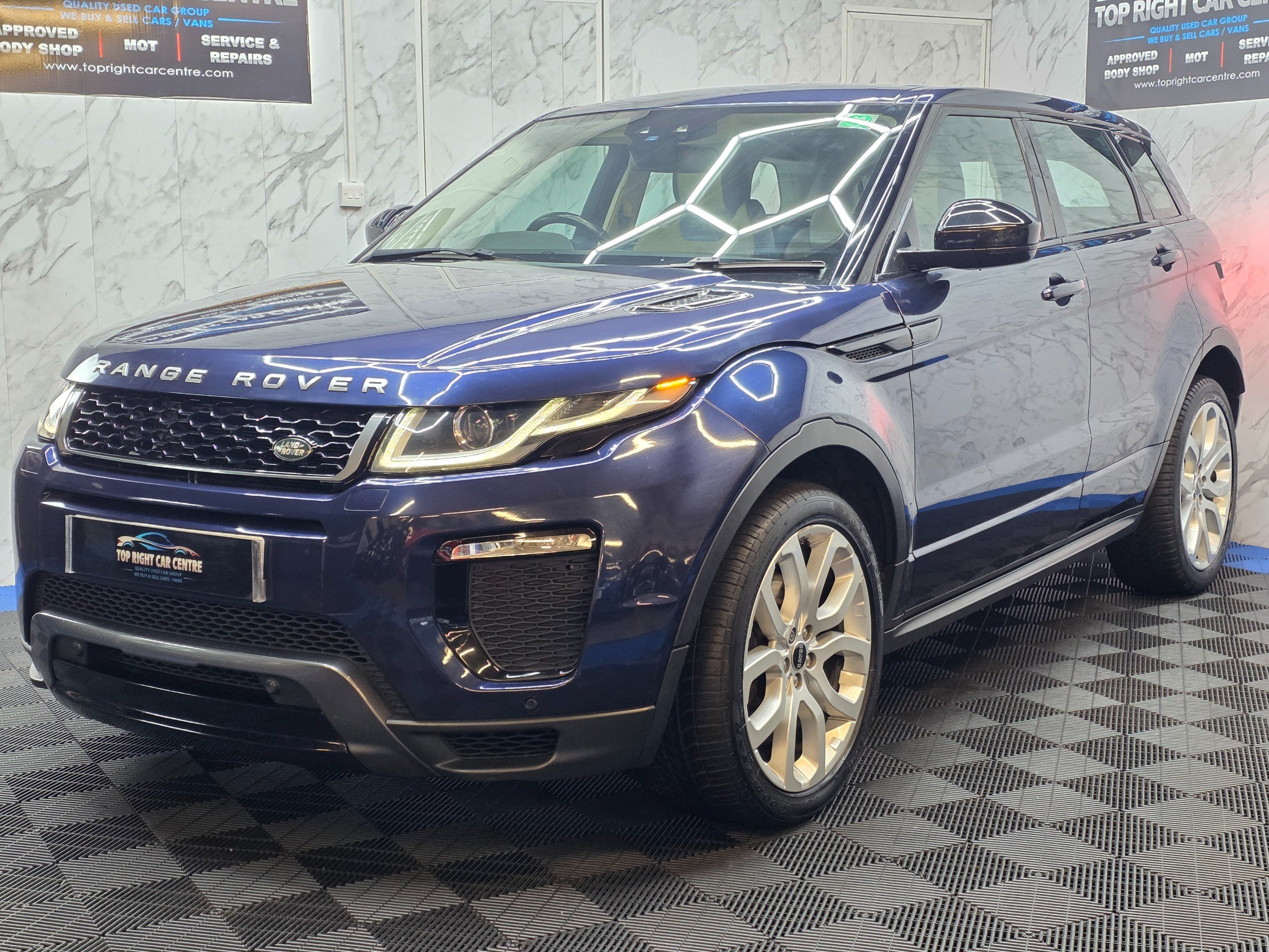Top Spec Evoque HSE Dynamic has massive centre touch screen SATNAV, full leather interior with heated seats, electric memory seats, ambient lights, meridian sound system, reversing camera, 4 driving modes, daytime running LED lights, all electric windows, parking sensors, cruise control.