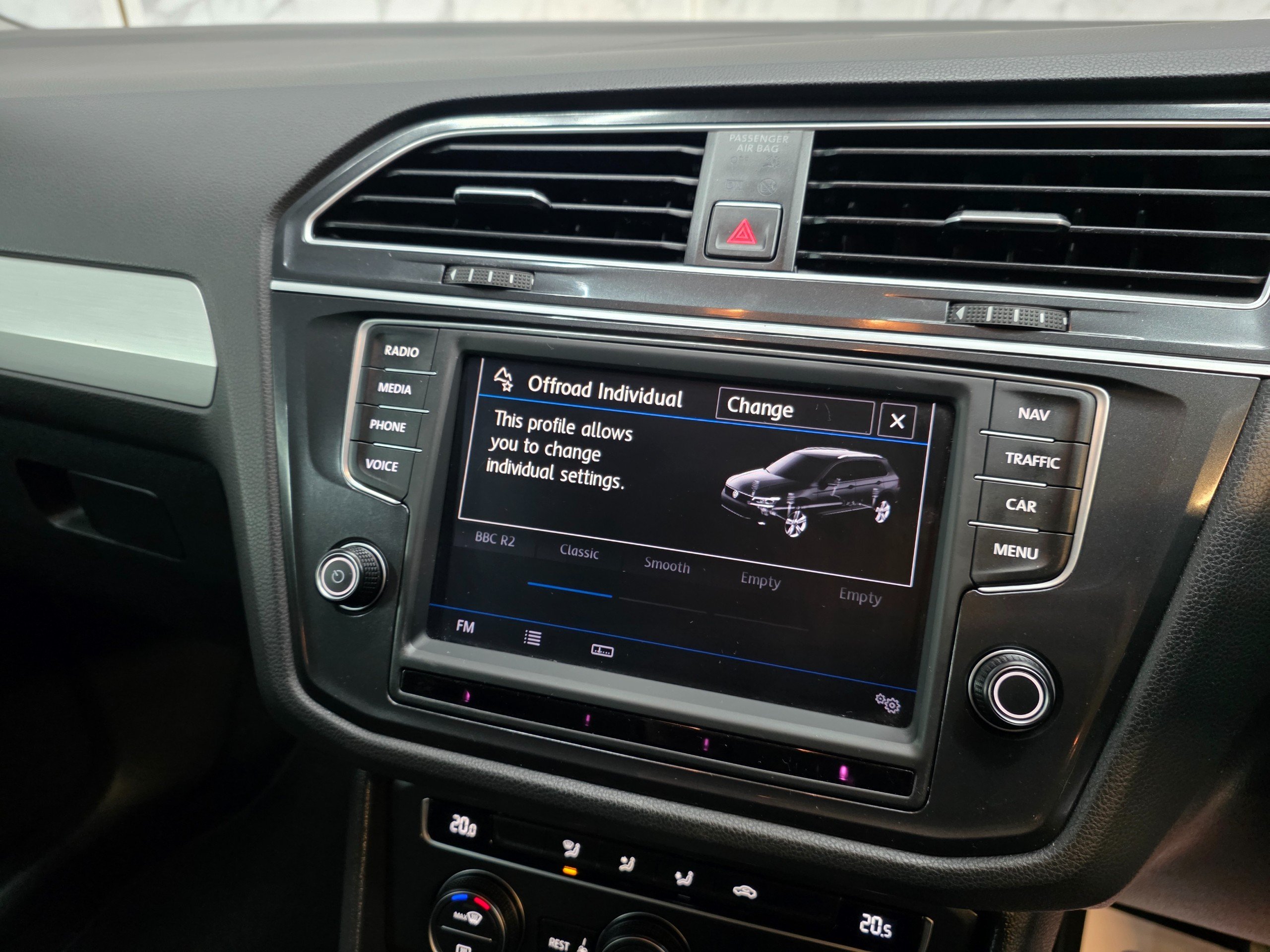 Top Spec BlueMotion Tech SE Navigation 4Motion has massive centre touch screen SATNAV, driving modes, all electric windows, auto folding electric side mirrors, privacy glass, parking sensors, digital dual climate control and rear climate control, cruise control.