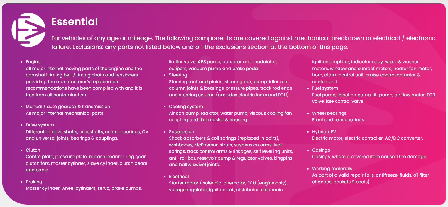 Without a warranty in place, you could be facing hefty garage bills should something unexpectedly go wrong. With thousands of parts covered, a fantastic range of benefits and our friendly, helpful team on hand to assist whenever you need us, you can relax knowing your vehicle is in safe hands.